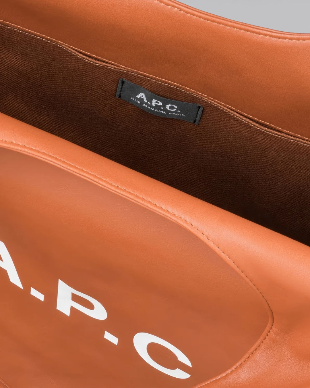 Bolso unisex confeccionado en material reciclado que imita el cuero. Cuenta con dos asas grandes para llevarlo en mano o al hombro, un bolsillo interior y el logotipo blanco de A.P.C. Composición: 55 % poliuretano, 40 % poliéster, 5 % carbonato de calcio. Fabricado en China. Para su cuidado, limpiar con un paño suave y seco. Medidas: 45 x 35,5 x 14 cm.